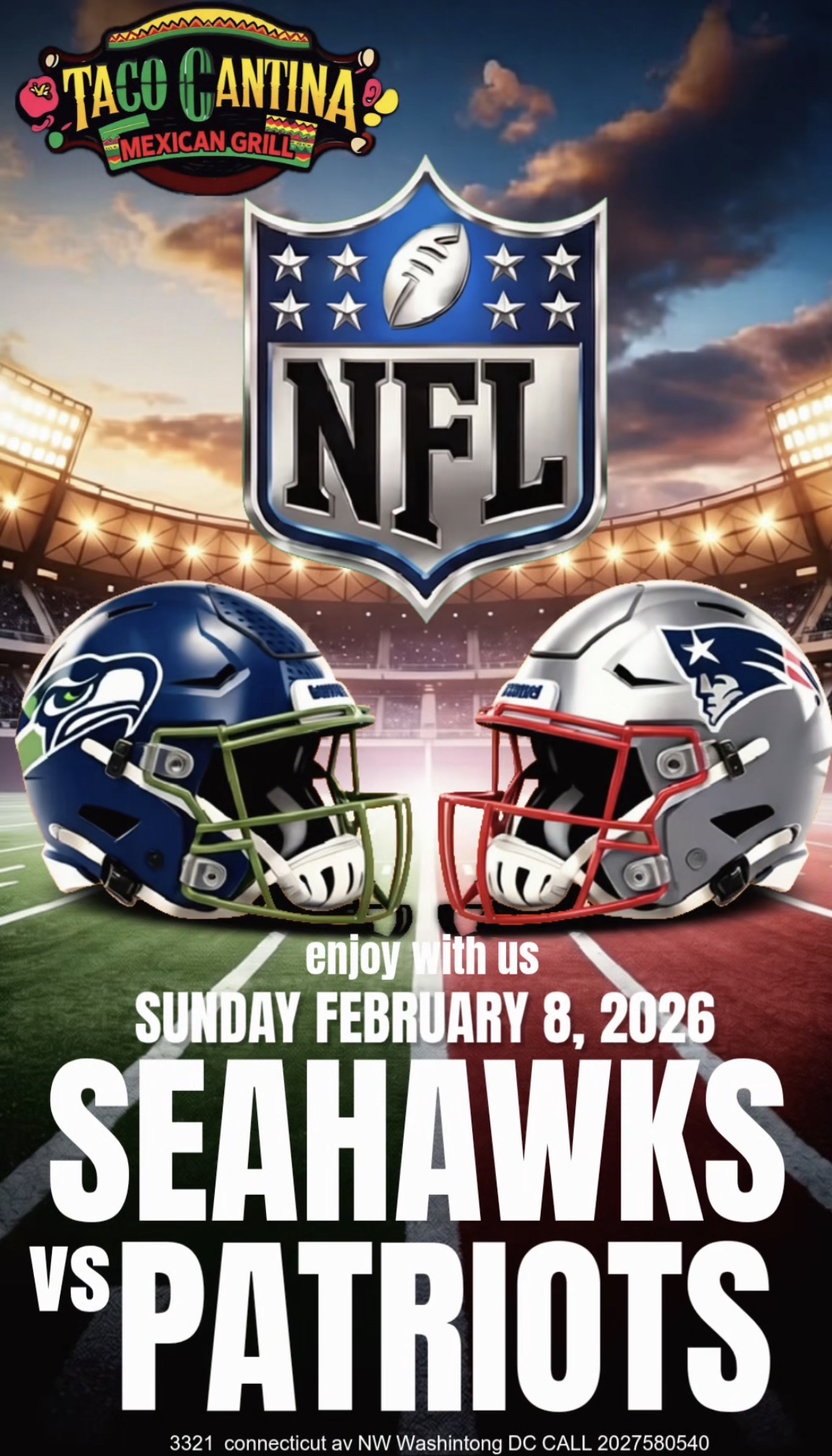 Taco cantina super special tacos, wings margaritas happy hour all day just for the Super Bowl Margarita Towers